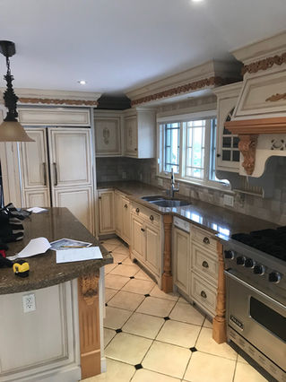 New floors, cabinets and marble tile in this kitchen renovation. Custom island trim and wall trim by our skilled carpenters. The finished design leaves this kitchen feeling bright and airy.